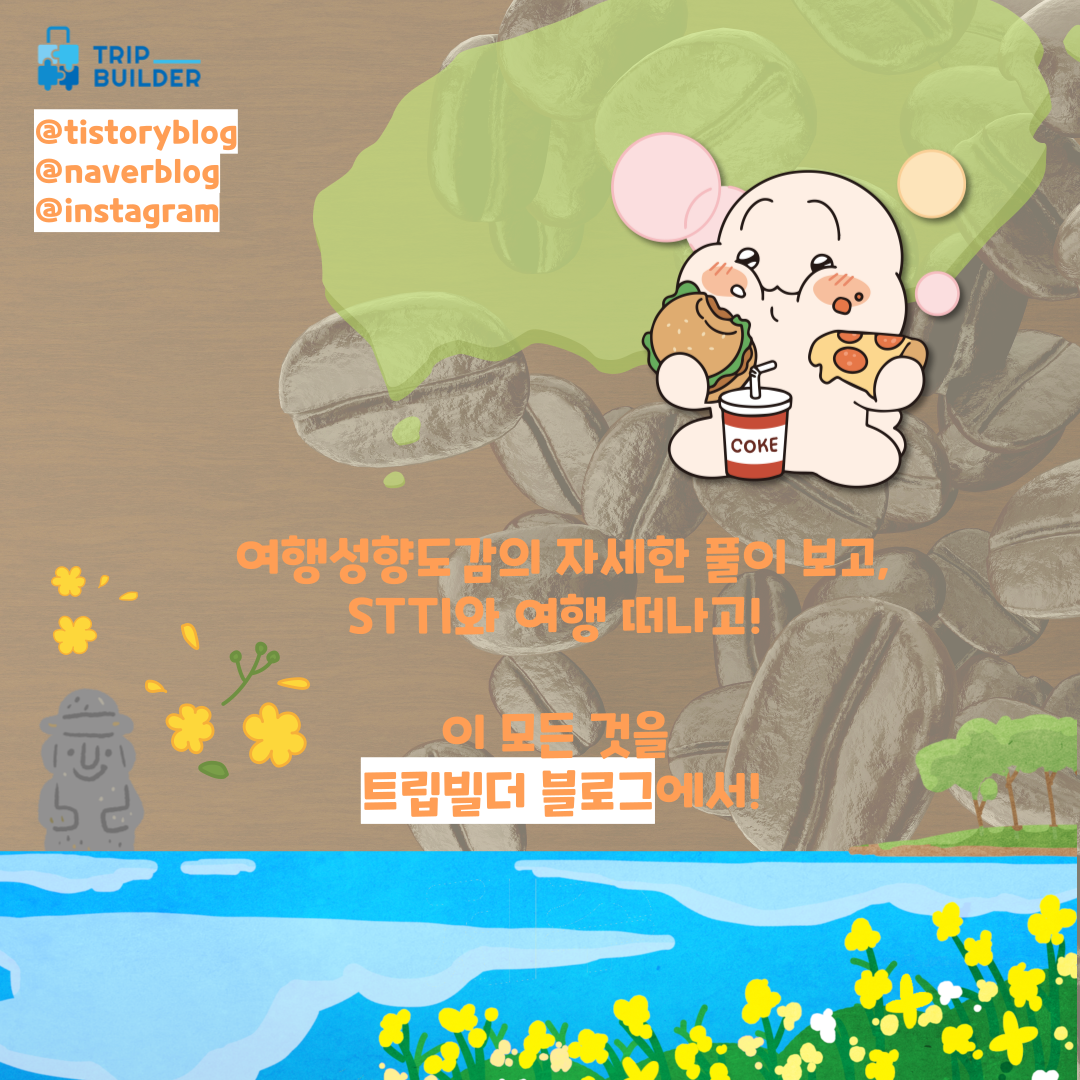 안녕하세요! 여러분의 여행메이트, 트립빌더입니다. 2월 6일자로 트립빌더의 STTI 여행성향 테스트의 새로운 버전 V5가 런칭되었습니다! 👏 여러분도 새로운 STTI와 함께 여행고래 획득하셨나요?