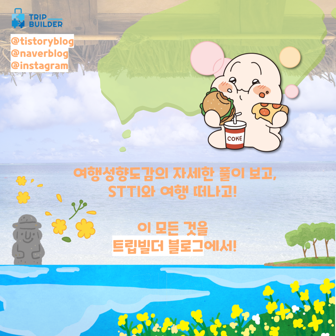 안녕하세요! 여러분의 여행메이트, 트립빌더입니다. 2월 6일자로 트립빌더의 STTI 여행성향 테스트의 새로운 버전 V5가 런칭되었습니다! 👏 여러분도 새로운 STTI와 함께 여행고래 획득하셨나요?