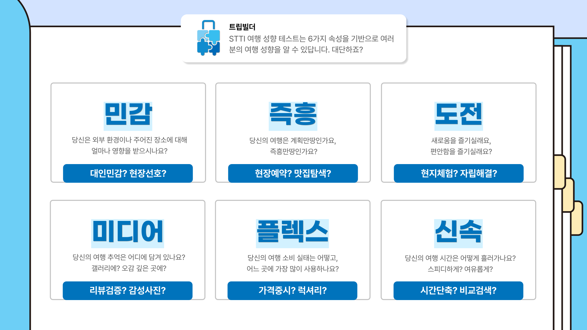 2월 6일자로 트립빌더의 STTI 여행성향 테스트의 새로운 버전 V5가 런칭되었습니다! 👏